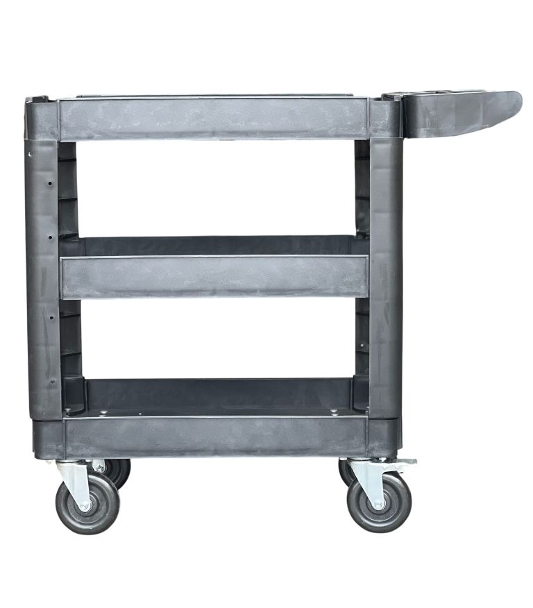 The polymer (heavy duty structural plastic) construction makes this three shelf eQuipt Workshop Trolley durable enough for moving tools and car parts. Easily handles loads up to 250kg. The castors allow you to manoeuvre the workshop trolley without marking the floor. Deep shelves give you plenty of storage for your tools and parts. This is the perfect heavy duty workshop trolley for garages, warehouses and workshops. Heavy-duty structural polymer construction makes this Workshop Tool Trolley tough enough for long, rugged use. Suitable for the loading and movement of heavy-duty parts and tools, this workshop trolley has the largest load capacity in its category with industrial grade castors that perform perfectly under significant load.