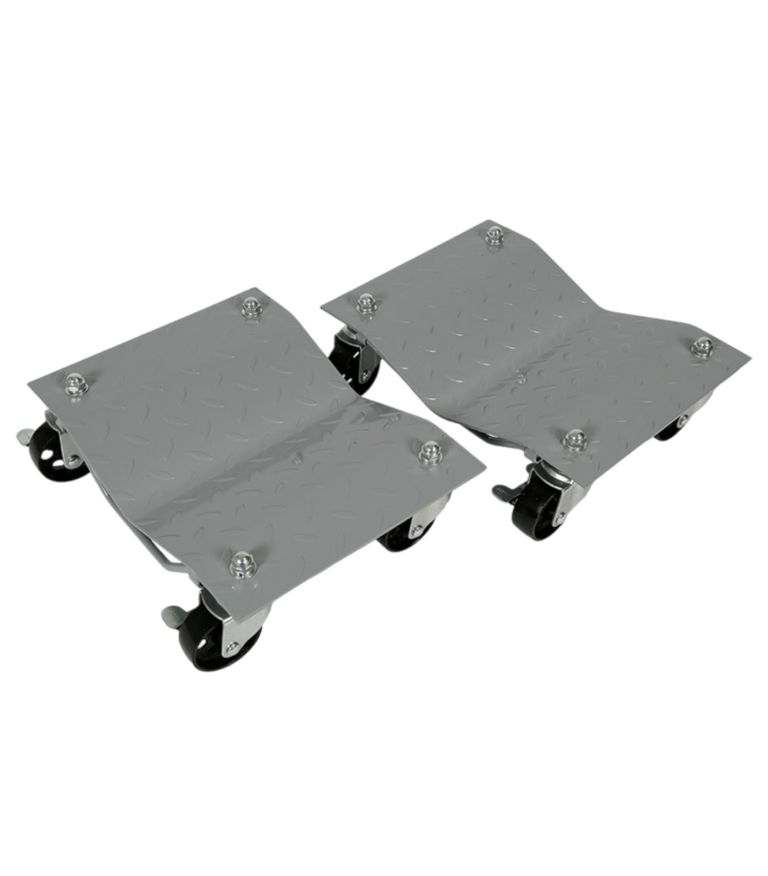 A pair of TradeQuip "Made for the Trade" wheel dollies provides an easy way to move a car, suv, heavy machinery and more, all by yourself. Each dolly is fitted with four heavy duty swivel castors. Robust steel manufacture enables up to 680kg weight to be carried on each dolly. Designed to locate underneath vehicle wheels allowing precise and easy movement within confined spaces.